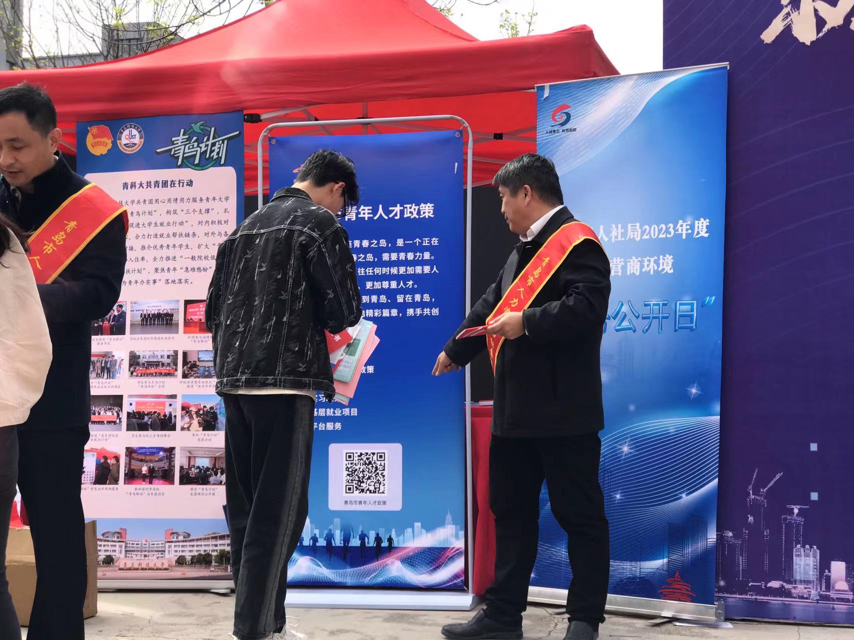 繼市人社局優(yōu)化營商環(huán)境“政務(wù)公開日”進(jìn)市場、進(jìn)企業(yè)活動后,4月21日上午,我局會同市就業(yè)人才中心走進(jìn)青島科技大學(xué)嶗山校區(qū),在“就在青島·職等你來”2023年高校畢業(yè)生校園招聘會現(xiàn)場共同舉辦市人社局優(yōu)化營商環(huán)境“政務(wù)公開日”進(jìn)校園暨2023年公共就業(yè)服務(wù)進(jìn)校園活動。