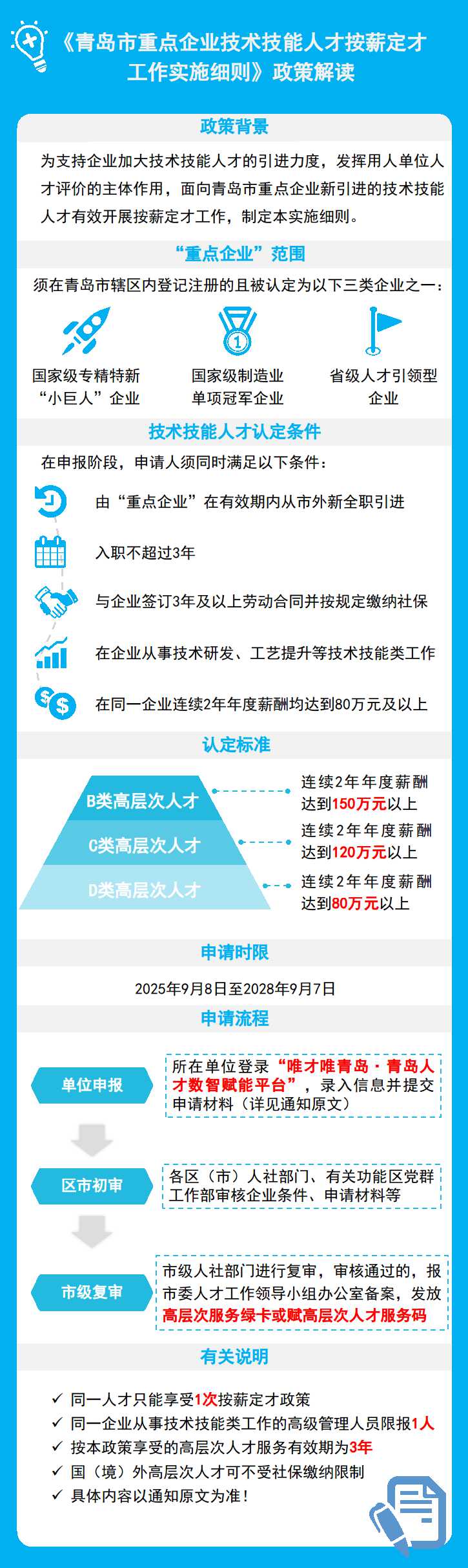 【圖文解讀】青島市人力資源和社會保障局等4部門關(guān)于印發(fā)《青島市重點(diǎn)企業(yè)技術(shù)技能人才按薪定才工作實(shí)施細(xì)則》的通知(青人社字〔2025〕73號)