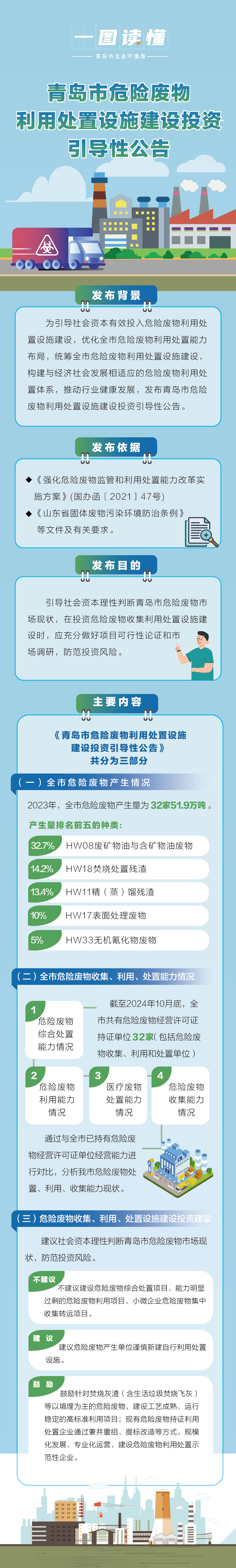 【圖片解讀】《青島市生態(tài)環(huán)境局關(guān)于青島市危險(xiǎn)廢物利用處置設(shè)施建設(shè)的投資引導(dǎo)性公告》