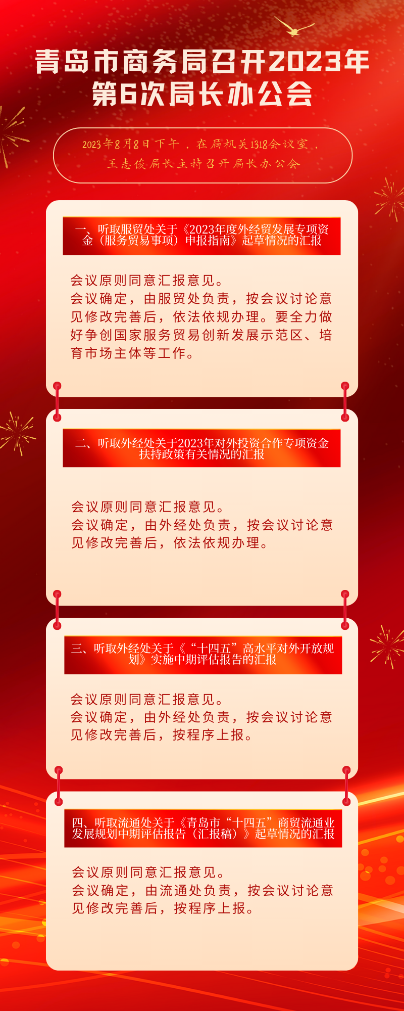 一圖讀懂|青島市商務局召開2023年第6次局長辦公會