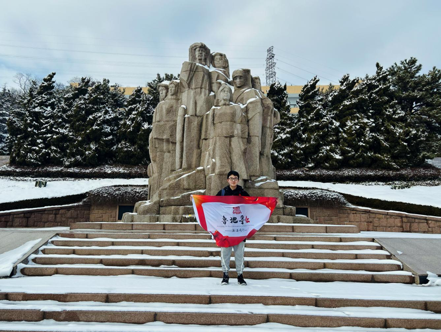 山東大學(xué)法學(xué)院的李昀澤同學(xué)帶著一面“魯?shù)貙ぜt——法治同行”的鮮艷旗幟來(lái)到了紀(jì)念館,他對(duì)我們說(shuō):“作為一名土生土長(zhǎng)的齊魯少年,在成長(zhǎng)道路上,他總能被青島的百年滄桑歷史所濡染熏陶。一想到革命先烈曾為了我們今天的幸福生活爬雪山過(guò)草地,歷盡艱險(xiǎn)和磨難,就覺(jué)得這點(diǎn)風(fēng)雪并不能阻擋自己前進(jìn)的步伐,這次帶著尋紅島城的信念來(lái)到紀(jì)念館參觀也是自己早已深埋于心的夙愿,來(lái)到紀(jì)念館參觀更深度激發(fā)了自己的愛國(guó)主義情懷,傳承了紅色革命理念,感覺(jué)很受鼓舞、收獲良多。”