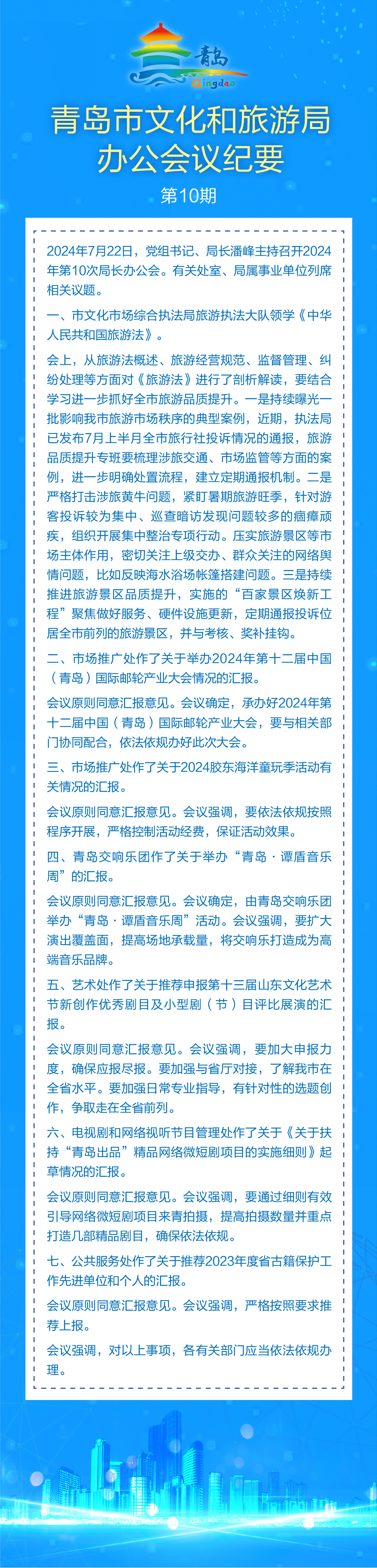 青島市文化和旅游局2024年第10次局長辦公會(huì)