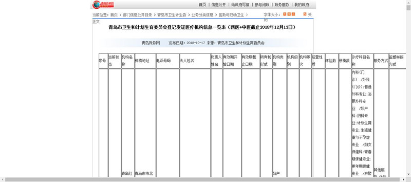 填報(bào)單位:青島市衛(wèi)生和計(jì)劃生育委員會(huì) 填報(bào)日期:2018年1月11日