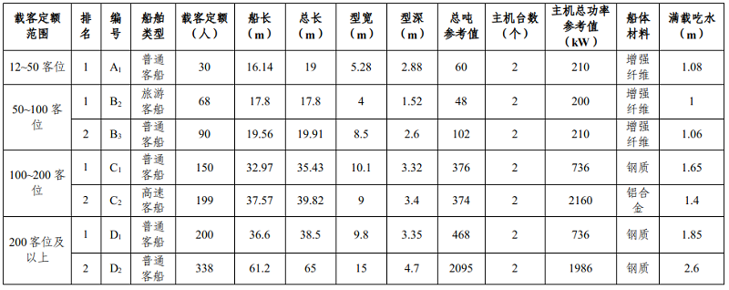 3.7 ?對載客12人以下船舶經(jīng)綜合調(diào)研進(jìn)行標(biāo)準(zhǔn)化船型推薦。