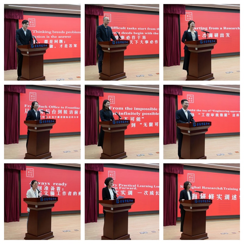 第五期“青心分享”會(huì)同步開啟,9名外出調(diào)研培訓(xùn)、借調(diào)掛職及局內(nèi)工作專班人員從“青瞻·領(lǐng)航者說(shuō)”“青鋒·外拓者說(shuō)”“青耘·內(nèi)煉者說(shuō)”三種視角,分享實(shí)踐感悟,結(jié)合經(jīng)歷暢談所思所獲。兩名參加市委黨校貫通式培訓(xùn)干部赴上海、杭州實(shí)訓(xùn),暢談如何通過政務(wù)創(chuàng)新打通科技成果轉(zhuǎn)化“梗阻”;借調(diào)、掛職鍛煉及外出調(diào)研人員上臺(tái)分享跨體系、跨層級(jí)的思維碰撞,引發(fā)“他山之石如何攻玉”的熱烈討論;局內(nèi)工作專班成員、市民中心跟班鍛煉代表分享工作心得體會(huì),揭秘“筆桿子”“講解員”“調(diào)解員”等專班成員的修煉之道。
