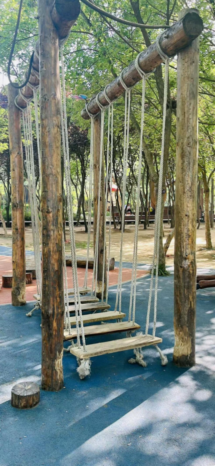 新增的攀爬架是座“反卷訓(xùn)練營”,拒絕電子屏幕的“頸椎刺客”,只批發(fā)最原始的快樂:當(dāng)孩子像樹懶抱住樹干般吊在繩索上時,他們肌肉里覺醒的,是遠(yuǎn)古人類幼崽該有的山林記憶。 ?