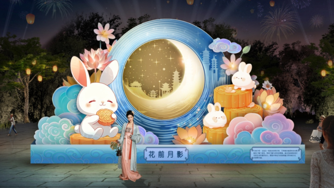 該區(qū)域位于北大草坪及以西部分區(qū)域,由“嶗韻流光”“漫步鮮花鎮(zhèn)”“機(jī)甲悟空”“瓷韻”“制香”“點(diǎn)茶”“書畫”“月闕云謠”等燈組組成。