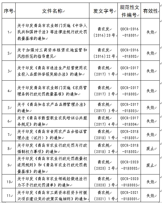 青島市農(nóng)業(yè)農(nóng)村局已失效和廢止的部門規(guī)范性文件目錄