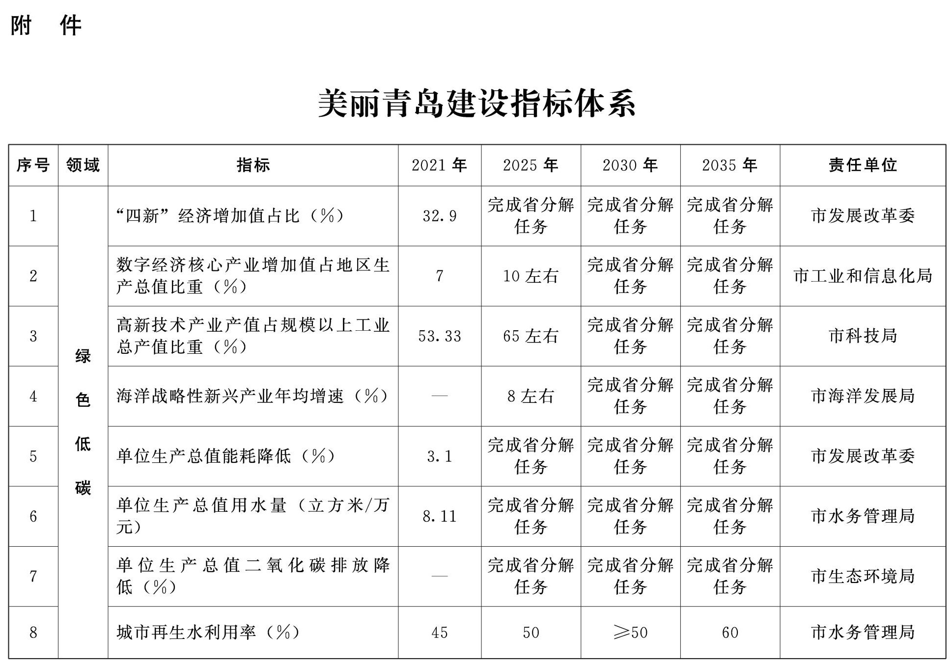 1.到2025年,人與自然和諧共生的美麗青島建設(shè)取得明顯成效。