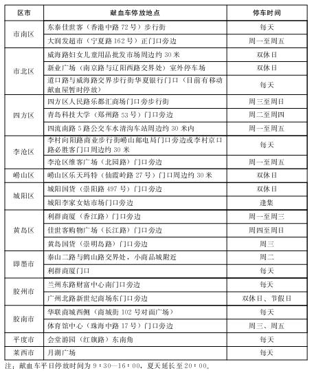 4.青島市獻(xiàn)血車停放地點(diǎn)和時(shí)間安排