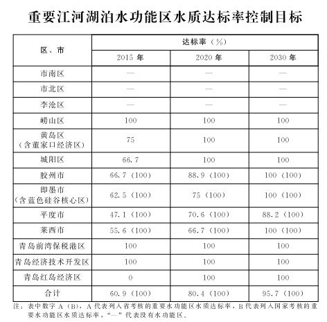 3.重要江河湖泊水功能區(qū)水質(zhì)達標率控制目標