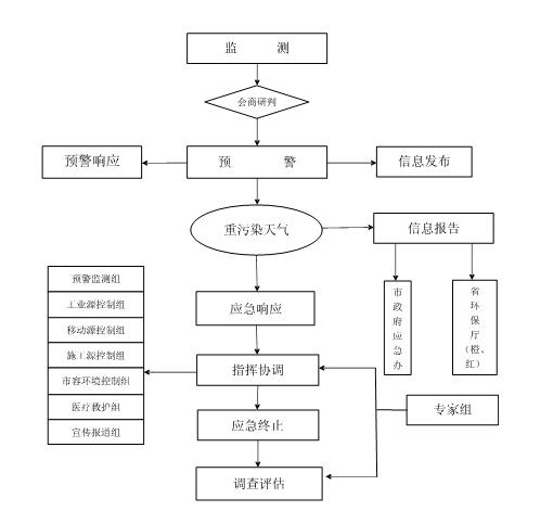 由市政府新聞辦牽頭,市廣播電視臺(tái)、市環(huán)保局、市氣象局、市衛(wèi)生計(jì)生委等組成。負(fù)責(zé)組織、協(xié)調(diào)社會(huì)信息發(fā)布和重污染天氣新聞報(bào)道;提醒公眾采取健康防護(hù)措施,開展建議性減排措施的宣傳。