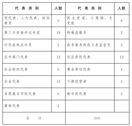 通過隨機(jī)抽取、組織推薦和自愿報(bào)名相結(jié)合的方式,邀請(qǐng)10000名市民代表分別在市級(jí)主會(huì)場(chǎng)以及區(qū)(市)和青島高新區(qū)分會(huì)場(chǎng),現(xiàn)場(chǎng)聽取市政府部門負(fù)責(zé)人的述職報(bào)告。其中,每組述職報(bào)告會(huì)邀請(qǐng)市民代表2500人(含市級(jí)主會(huì)場(chǎng)100人)。