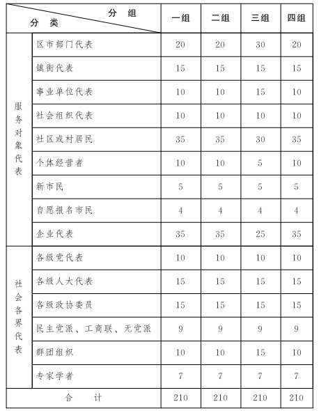 注:各分會(huì)場(chǎng)為210人,其中,市北區(qū)參照以上構(gòu)成比例選取280人,黃島區(qū)選取380人,青島高新區(qū)選取60人。