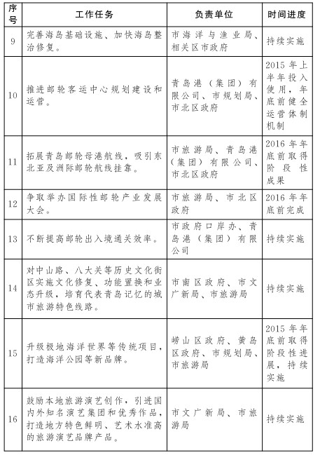 ?。ǘ┌l(fā)展郵輪游艇旅游。強(qiáng)化政策支持和引導(dǎo),推進(jìn)郵輪客運(yùn)中心規(guī)劃建設(shè)和運(yùn)營,拓展青島郵輪母港航線,吸引東北亞以及洲際郵輪航線掛靠,舉辦國際性郵輪產(chǎn)業(yè)發(fā)展大會。強(qiáng)化郵輪碼頭周邊配套設(shè)施建設(shè),不斷提高郵輪出入境通關(guān)效率。清理簡化游艇審批手續(xù),吸引社會資本投入,培育發(fā)展游艇大眾消費(fèi)市場。推進(jìn)游船游艇帆船旅游企業(yè)的正規(guī)化、集約化、規(guī)?;l(fā)展,開發(fā)完善海上觀光、餐飲、娛樂、演藝、婚慶、會議等海上旅游產(chǎn)品。重點(diǎn)打造3至4處休閑海釣產(chǎn)業(yè)基地,創(chuàng)建省級海洋和內(nèi)陸休閑垂釣示范基地,規(guī)范發(fā)展游釣協(xié)會和游釣船艇,舉辦和承辦省、市級游釣比賽活動。