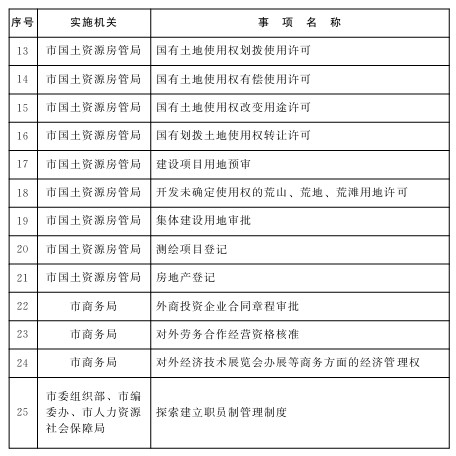 ?。ㄒ唬┣鄭u高新技術(shù)產(chǎn)業(yè)開(kāi)發(fā)區(qū)(紅島經(jīng)濟(jì)區(qū))范圍內(nèi)投資發(fā)展類、國(guó)土資源類等25項(xiàng)行政管理權(quán)限委托青島高新技術(shù)產(chǎn)業(yè)開(kāi)發(fā)區(qū)(紅島經(jīng)濟(jì)區(qū))實(shí)施,具體賦權(quán)目錄詳見(jiàn)附件。