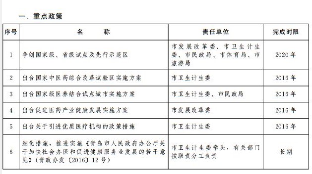 青島市健康服務(wù)業(yè)創(chuàng)新發(fā)展重點政策和重點項目