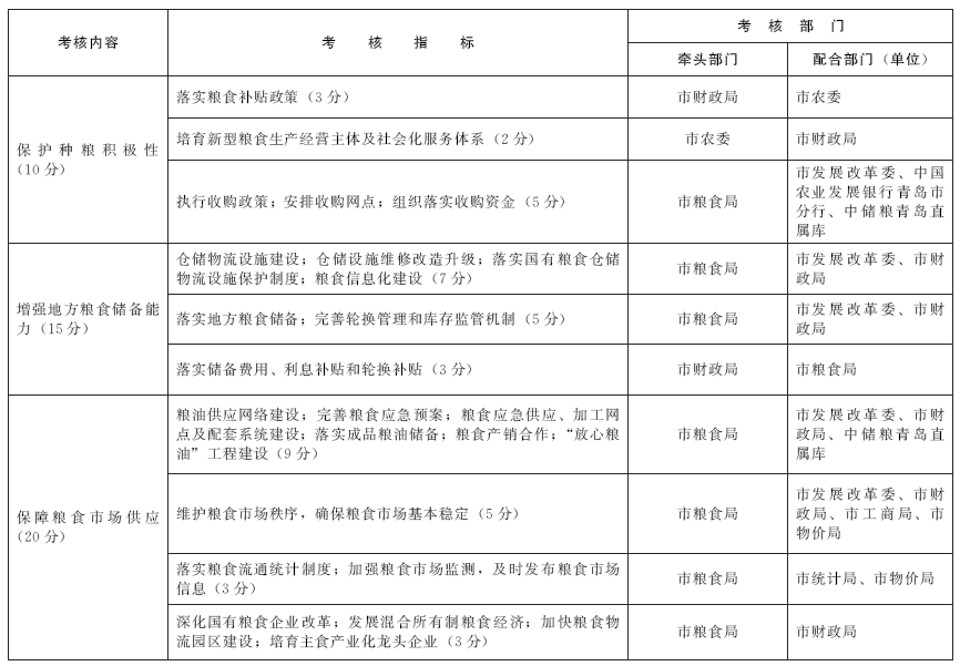 青島市糧食安全責(zé)任考核辦法