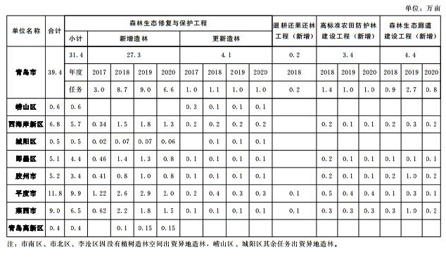 “綠滿青島”國(guó)土綠化行動(dòng)造林任務(wù)分解表