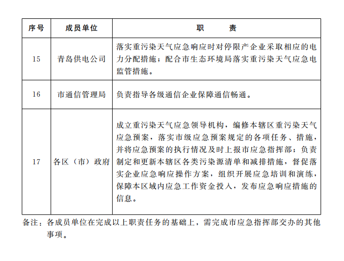 附件:青島市重污染天氣專項(xiàng)應(yīng)急指揮部各成員單位職責(zé)分工表