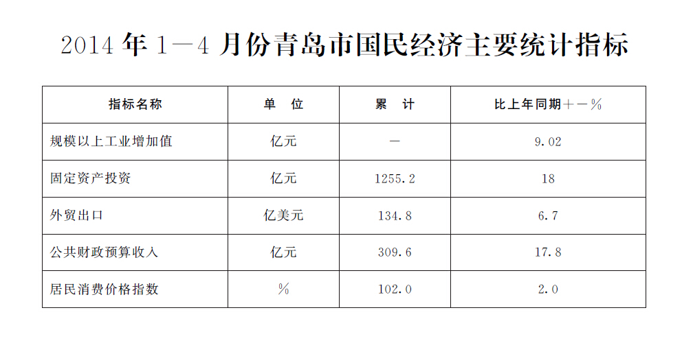 2014年1-4月份青島市國民經濟主要統(tǒng)計指標
