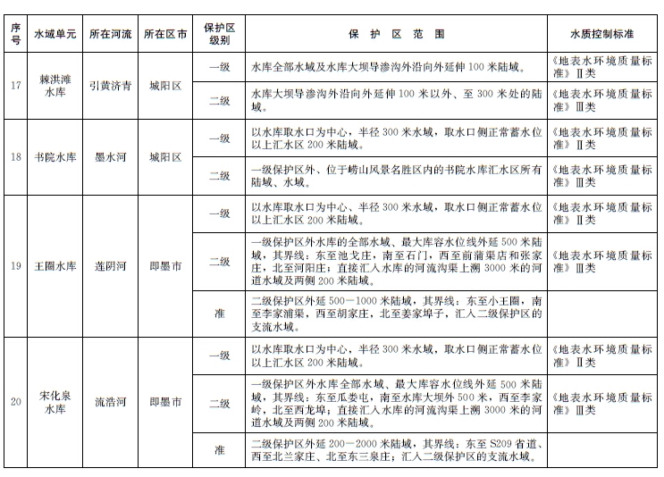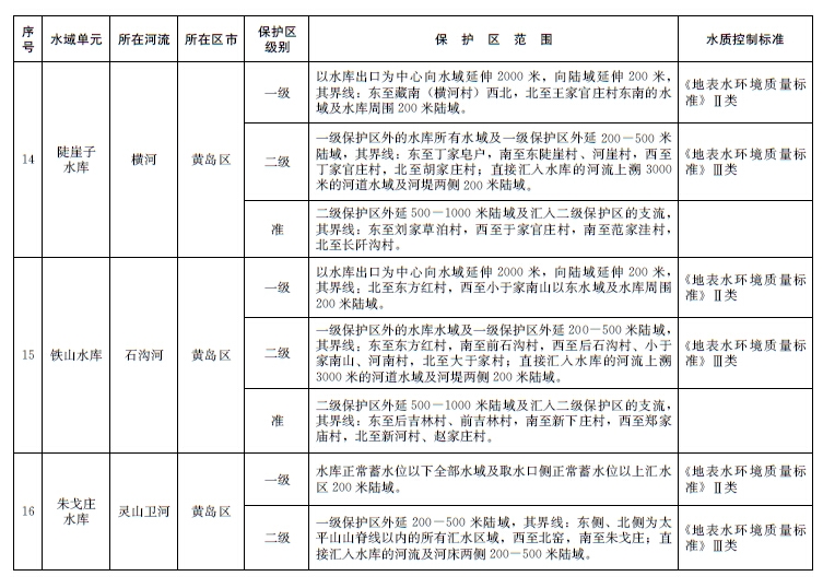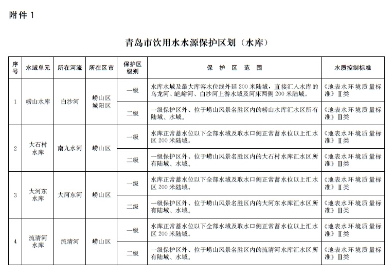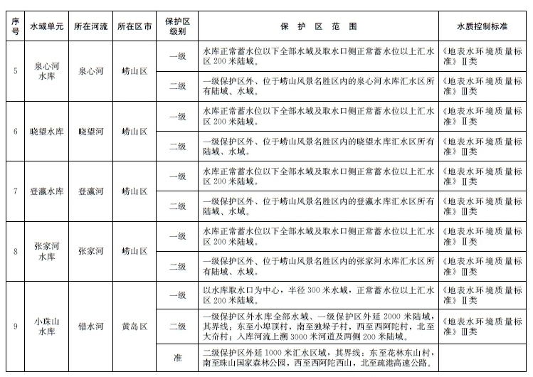 一、為保護(hù)青島市飲用水水源地生態(tài)環(huán)境,防治水源污染,確保水源水質(zhì),保障飲水安全,根據(jù)《中華人民共和國(guó)水污染防治法》《中華人民共和國(guó)水法》《青島市生活飲用水源環(huán)境保護(hù)條例》等法律法規(guī),結(jié)合《青島市水功能區(qū)劃》,劃分全市集中式飲用水水源保護(hù)區(qū)。