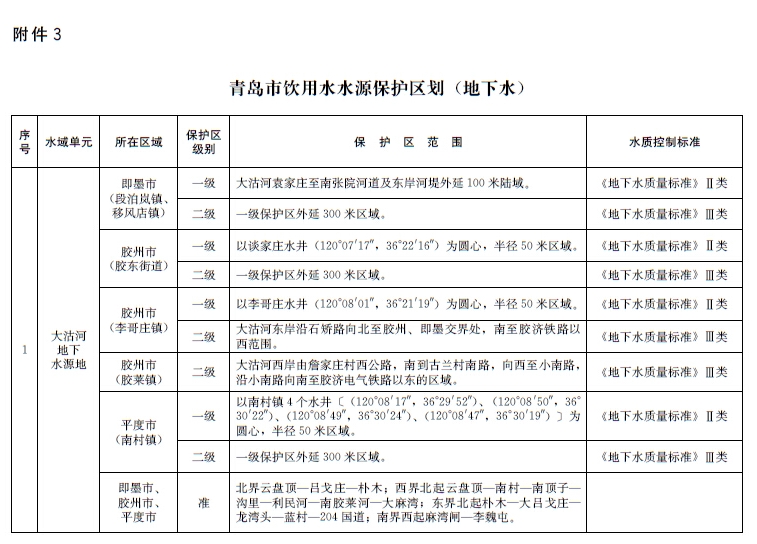 3青島市飲用水水源保護(hù)區(qū)劃(地下水)