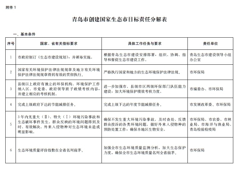 附件:1.青島市創(chuàng)建國(guó)家生態(tài)市目標(biāo)責(zé)任分解表