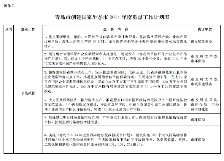 2.青島市創(chuàng)建國(guó)家生態(tài)市2014年度重點(diǎn)工作計(jì)劃表