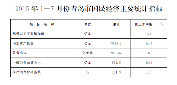 2015年1-7月份青島市國民經(jīng)濟主要統(tǒng)計指標