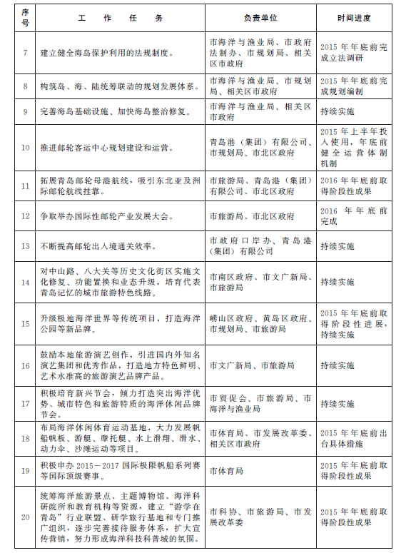 ?。ǘ┌l(fā)展郵輪游艇旅游。強(qiáng)化政策支持和引導(dǎo),推進(jìn)郵輪客運(yùn)中心規(guī)劃建設(shè)和運(yùn)營,拓展青島郵輪母港航線,吸引東北亞以及洲際郵輪航線掛靠,舉辦國際性郵輪產(chǎn)業(yè)發(fā)展大會(huì)。強(qiáng)化郵輪碼頭周邊配套設(shè)施建設(shè),不斷提高郵輪出入境通關(guān)效率。清理簡(jiǎn)化游艇審批手續(xù),吸引社會(huì)資本投入,培育發(fā)展游艇大眾消費(fèi)市場(chǎng)。推進(jìn)游船游艇帆船旅游企業(yè)的正規(guī)化、集約化、規(guī)?;l(fā)展,開發(fā)完善海上觀光、餐飲、娛樂、演藝、婚慶、會(huì)議等海上旅游產(chǎn)品。重點(diǎn)打造3至4處休閑海釣產(chǎn)業(yè)基地,創(chuàng)建省級(jí)海洋和內(nèi)陸休閑垂釣示范基地,規(guī)范發(fā)展游釣協(xié)會(huì)和游釣船艇,舉辦和承辦省、市級(jí)游釣比賽活動(dòng)。