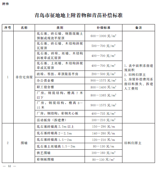 附件:青島市征地地上附著物和青苗補(bǔ)償標(biāo)準(zhǔn)