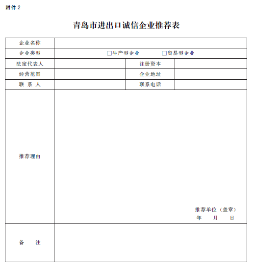 2.青島市進(jìn)出口誠信企業(yè)推薦表
