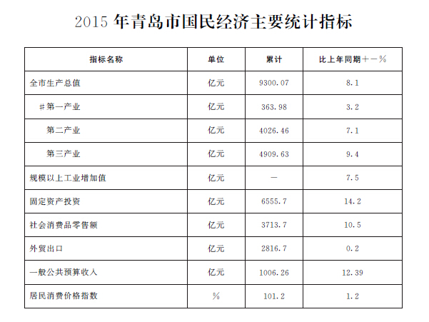 2015年青島市國民經(jīng)濟(jì)主要統(tǒng)計(jì)指標(biāo)