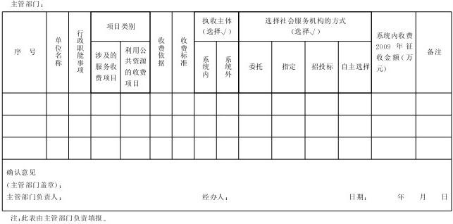 各部門和單位要如實(shí)上報(bào)上述服務(wù)事項(xiàng)及收費(fèi)情況,包括服務(wù)事項(xiàng)、服務(wù)收費(fèi)設(shè)定的依據(jù)、收費(fèi)標(biāo)準(zhǔn)和收費(fèi)金額。并注明服務(wù)事項(xiàng)是由部門和單位內(nèi)部(含下屬單位)提供,還是由中介機(jī)構(gòu)或其他社會(huì)組織提供;費(fèi)用由部門和單位收取還是由中介機(jī)構(gòu)或其他社會(huì)組織收取。其中,由中介機(jī)構(gòu)或其他社會(huì)組織提供服務(wù)的,需注明委托方式。