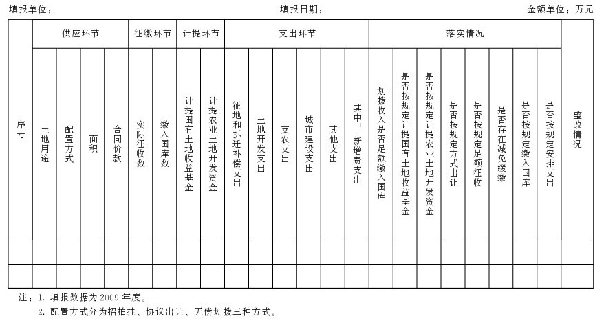 ?。ㄊ┩晟仆恋爻鲎屖罩Ыy(tǒng)計制度。土地出讓收支統(tǒng)計報表,是反映土地市場運行情況和土地出讓收支政策執(zhí)行情況的重要途徑,是制定和完善相關政策的重要依據,也是查找問題、強化日常管理的工作平臺。各級要認真做好土地出讓收支統(tǒng)計工作,明確統(tǒng)計報表填報部門,落實填報責任。認真執(zhí)行財政部、國土資源部、中國人民銀行《關于建立國有土地收支統(tǒng)計報表體系的通知》(財綜〔2007〕29號)、《關于加強國有土地收支統(tǒng)計報表編報工作的通知》(財綜〔2010〕10號)的有關規(guī)定。財政、國土資源管理部門和人民銀行分支機構要分別做好報表數據審核工作,確保數據準確,共同做好統(tǒng)計報表填報工作。財政部門要及時匯總本地區(qū)土地出讓收支報表,確保按時報送上級財政、國土資源管理部門、人民銀行分支機構。同時,各區(qū)(市)財政、國土資源管理部門要充分發(fā)揮統(tǒng)計報表作用,及時研究分析本地區(qū)土地資源管理運行情況和土地出讓收支政策執(zhí)行情況,不斷完善政策制度,強化管理。