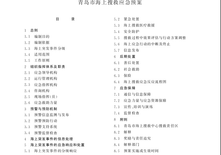 市政府辦公廳2006年6月19日印發(fā)的《青島市海上搜救應(yīng)急預(yù)案》(青政辦發(fā)〔2006〕52號)同時廢止?! ?br/> 青島市海上搜救應(yīng)急預(yù)案.jpg