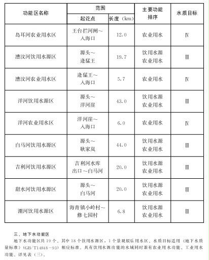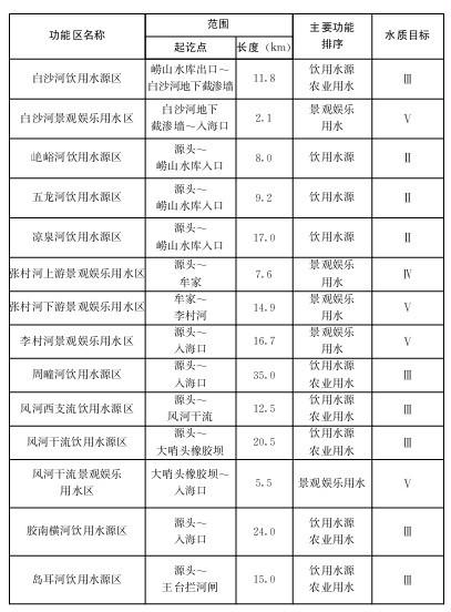 四、各水功能區(qū)的功能排序在現(xiàn)狀功能的基礎(chǔ)上結(jié)合該水域的規(guī)劃功能確定。水質(zhì)目標(biāo)為該水域規(guī)劃功能的水質(zhì)目標(biāo),遵循不低于現(xiàn)狀水質(zhì)和同一功能區(qū)多種功能水質(zhì)就高不就低的原則確定。