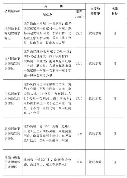 二、水功能區(qū)的劃定范圍為流域面積100平方公里以上的河道及其它重要河段、24座大中型水庫及其他有重要供水功能的小型水庫、擔(dān)負(fù)城鄉(xiāng)供水任務(wù)的地下水水源地等。