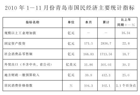 2010年1-11月份青島市國民經(jīng)濟(jì)主要統(tǒng)計(jì)指標(biāo)
