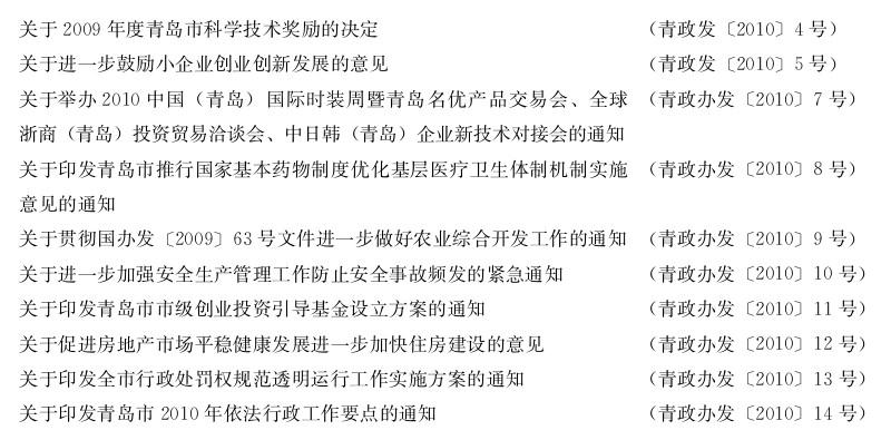 2010年3—4月份市政府辦公廳發(fā)文目錄