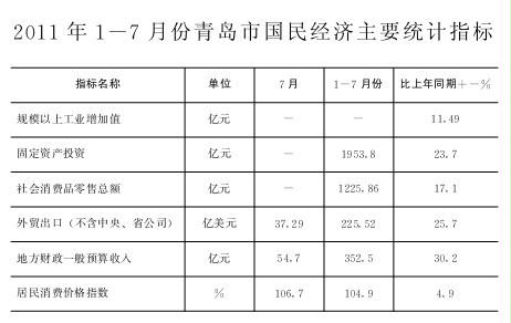 2011年1-7月份青島市國民經(jīng)濟主要統(tǒng)計指標(biāo)
