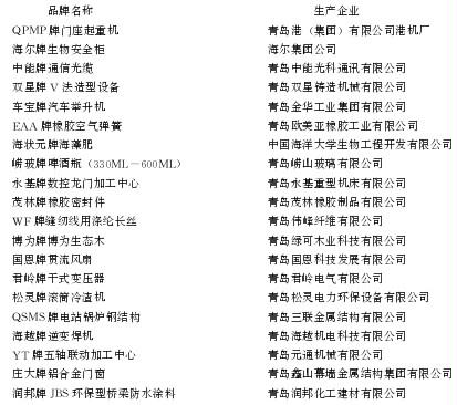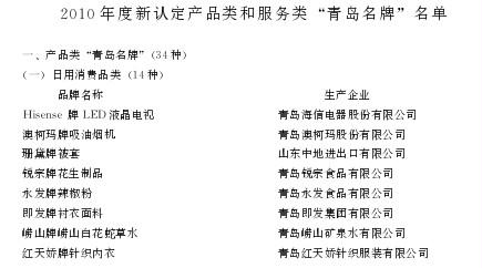 2010年度新認(rèn)定產(chǎn)品類和服務(wù)類“青島名牌”名單
