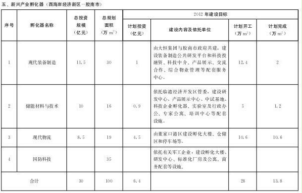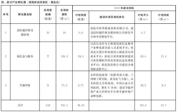 西海岸經(jīng)濟(jì)新區(qū)重點(diǎn)圍繞戰(zhàn)略性新興產(chǎn)業(yè)培育和高新技術(shù)產(chǎn)業(yè)發(fā)展,在黃島區(qū)和膠南市共規(guī)劃建設(shè)300萬平米專業(yè)及綜合孵化器。