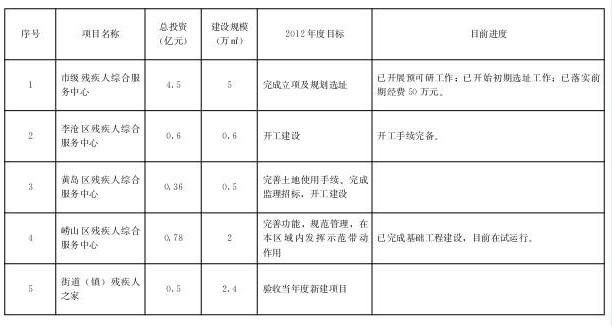 2.推進(jìn)目標(biāo):2012年前對(duì)當(dāng)年建設(shè)的街道(鎮(zhèn))殘疾人之家進(jìn)行達(dá)標(biāo)驗(yàn)收,2016年底前全面完成60個(gè)街道(鎮(zhèn))殘疾人之家建設(shè)。