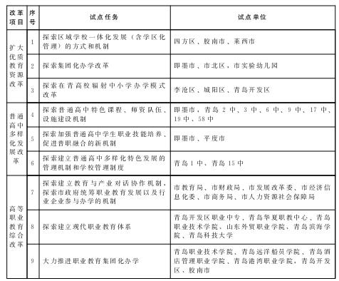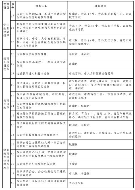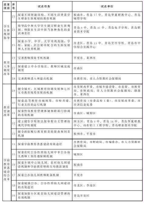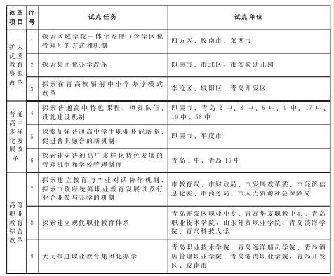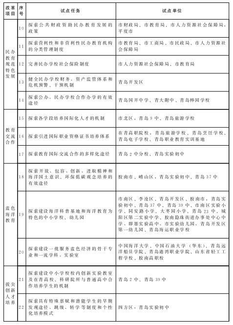 青島市教育體制改革試點(diǎn)任務(wù)、試點(diǎn)單位一覽表