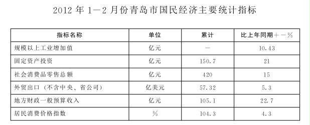 2012年1-2月份青島市國民經(jīng)濟(jì)主要統(tǒng)計(jì)指標(biāo)