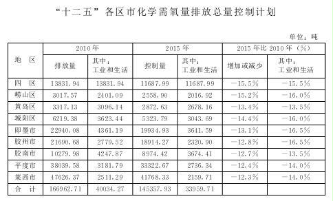 2.“十二五”各區(qū)市化學(xué)需氧量排放總量控制計(jì)劃