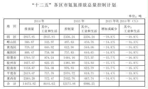 3.“十二五”各區(qū)市氨氮排放總量控制計(jì)劃