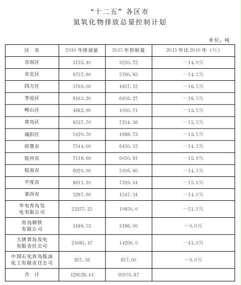 5.“十二五”各區(qū)市氮氧化物排放總量控制計(jì)劃